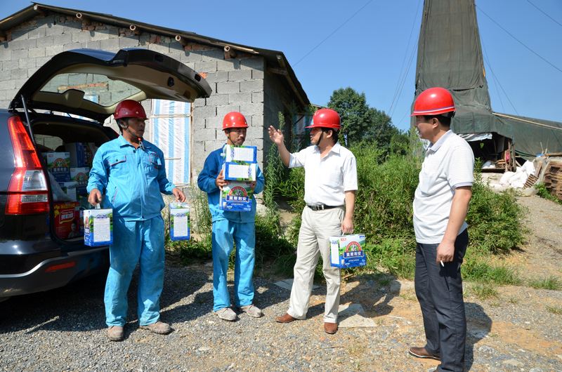 7月30~31日,队党委书记潘良玉、副队长兼工会主席黄伟明率领安全科、探矿科、政治处人员,深入队姚家岭、狮金山、无为章村地质普查项目钻探机台,枞阳汤沟镇建材大市场工勘现场,池州50万平米安置房建筑施工工地,玻钢公司有色大硫酸项目工地等,开展盛夏送清凉慰问,为每位职工及临时工送上牛奶、果汁、绿豆、白糖等价值百元的防暑降温物品。据悉,今年队工会为全队在职在岗职工及临时工发放价值3万元送清凉慰问品。每到一处,队领导都与职工亲切交流座谈,面对面听取职工意见要求,了解生产进度同时,关心询问职工作息、伙食及高温保障措施,叮嘱项目负责人重视高温期间人员、设备安全,合理调整作息时间,防中暑雷电。