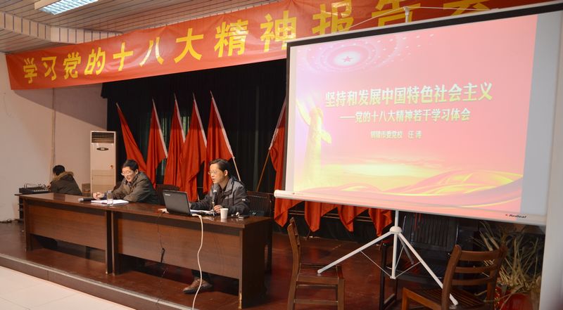 1月18日下午,队党委在社区二楼会议室举办学习党的十八大精神报告会。这次报告会特别邀请到铜陵市委党校的汪涛教授作学习贯彻党的十八大精神主题报告。队机关党员干部、入党积极分子、入党申请人以及景山社区党员干部参加了报告会。大会由景山社区党委书记陈志伟主持。