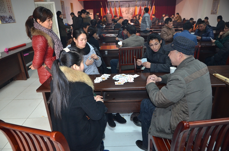 12月28日周六,队工会组织职工在社区二楼会议室进行“迎元旦掼蛋扑克牌比赛”,94名选手经过6轮淘汰赛,决出前三名。来自物业分会的汪宗华/王平最终获得冠军,机关分会的程兴苗/王和春获亚军,地勘分院分会的周红利/陈保汐获得季军。