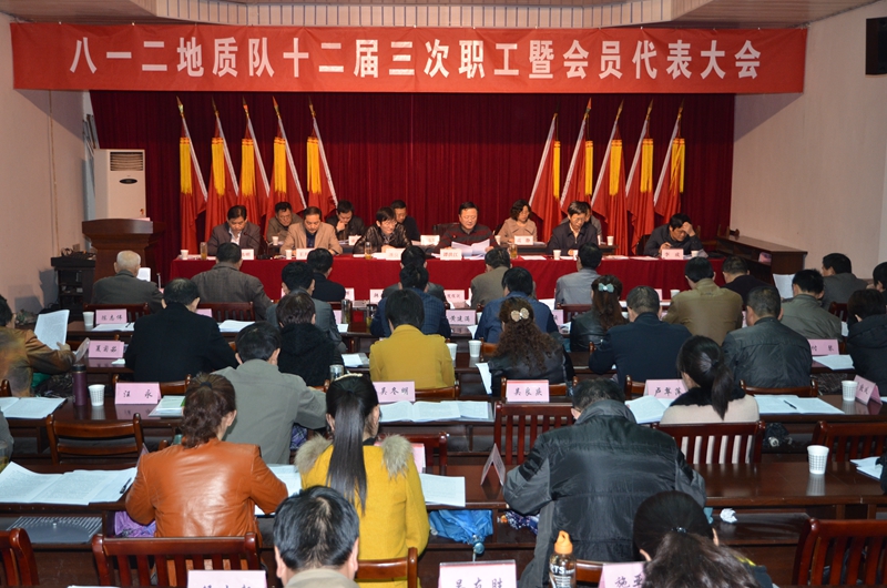 3月25日,队十二届三次职工暨工会会员代表大会圆满完成各项议程,胜利闭幕。这次会议全面总结了队2013年度工作,分析地勘经济发展的新形势、新任务,安排部署2014年工作任务,动员全队干部职工进一步解放思想,抢抓机遇,坚定信心,为开创我队地勘工作新局面吹响集结号。局工会委员会主任左志玲、女工委主任邓惠玲应邀到会指导,会议还特别邀请景山社区党委书记陈志伟和5名离退休职工列席大会。
