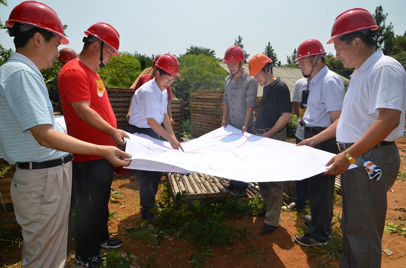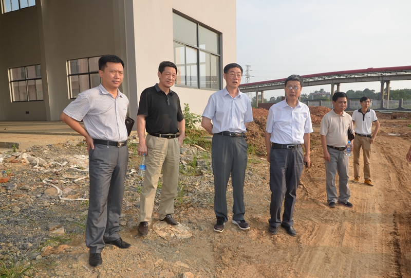 汪邦坤(左三)书记一行来到队玻钢新厂区视察工程进度