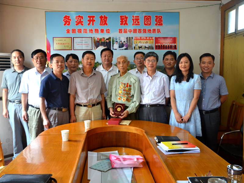 局、队领导与王培元(中)老人合影