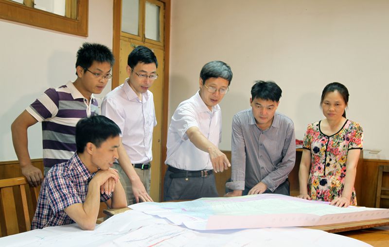 蒋其胜总工(左四)指导项目组成员工作