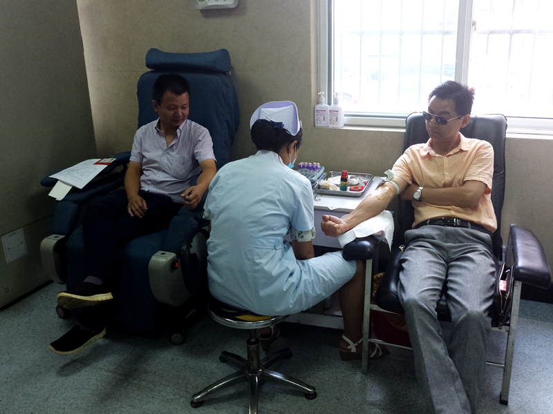 献血现场,所有流程都在市中心血站医护工作人员的协调下井然有序地进行,填表、体检、化验、等候、抽血、休息,每一步骤都严格把关,认真严谨。队党委书记潘良玉一早就赶到血站,看望参加无偿献血的队职工。在献血队伍当中,有的已年近50,有的刚参加工作;有的是数次参加无偿献血的积极分子,有的是第一次献出热血的蓬勃青年。其中,队职工郭根宝连续三年主动献血400cc,为同事做出良好表率。