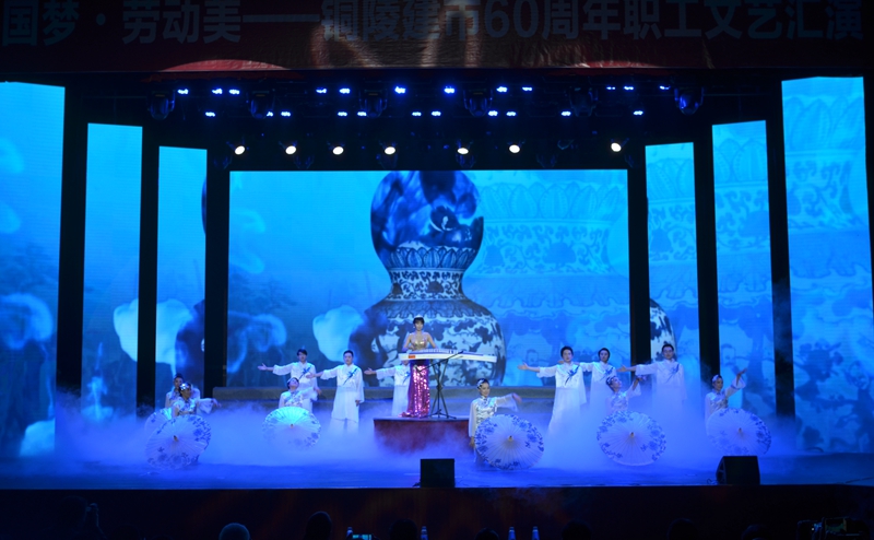 60年前,皖江之畔的一座工业小城蹒跚起步;60年后,铜都大地一座现代化文明城市飞速崛起。在庆祝建市60周年的大好日子里,由铜陵市总工会举办的“中国梦,劳动美”铜陵建市60周年职工文艺汇演于10月19日晚在市五松山剧院隆重举行,省总工会、市委、市总工会领导观看演出。本次演出得到来自全市各县区、市直机关、大型企事业单位的积极参与,经过筛选,最终确定16个节目参加演出。我队工会精心组织一支13人组成的器乐舞蹈节目《青花瓷》登台表演,将动人心弦的古筝演奏和美轮美奂的舞蹈相结合,形式典雅,旋律优美,亮点纷呈。队文艺骨干陆钰的古筝独奏精彩流畅,如行云流水,整首曲目一气呵成,赢得现场观众热烈掌声,本场演出的艺术总监高老师也给予高度评价。