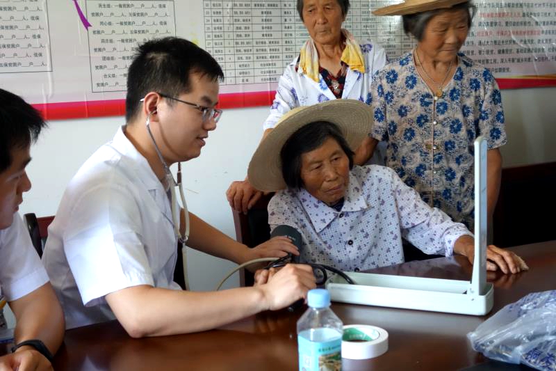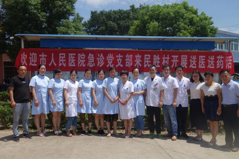 7月15日上午,正值双休日,队与汤沟镇民胜村党总支特别邀请了市人民医院急诊科党支部来村开展“送医药下乡”活动,在炎炎夏日为村民进行体检及日常健康知识宣传。