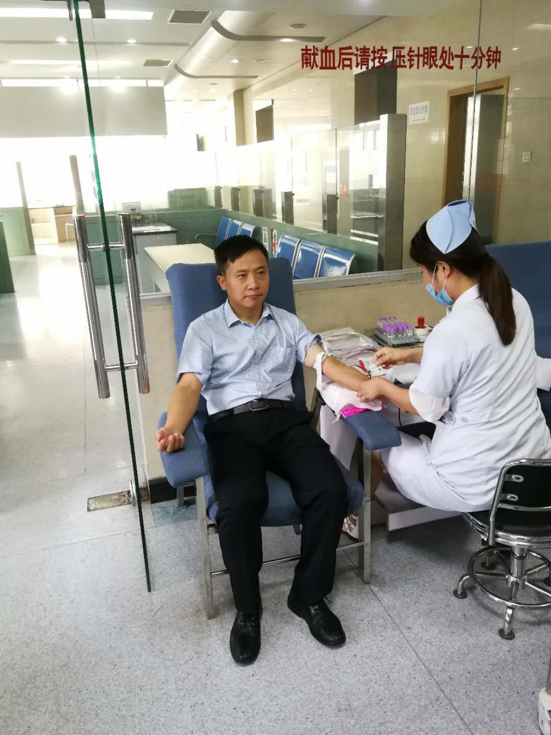 献血现场,所有流程都在市中心血站医护工作人员的协调下井然有序地进行,每一步骤都严格把关,认真严谨。在献血队伍当中,有的已年过50,有的刚参加工作;有的是数次参加无偿献血的积极分子,有的是第一次献出热血的蓬勃青年。其中,队职工邱健、鲁建华、聂固主动献血300ml。单位规定献血职工可以休息一天,但是队长助理丁晖献完血后就奔赴枞阳县开展扶贫检查工作;聂固同志也是直接赶往野外工地继续工作,身体力行为全体职工做出表率。